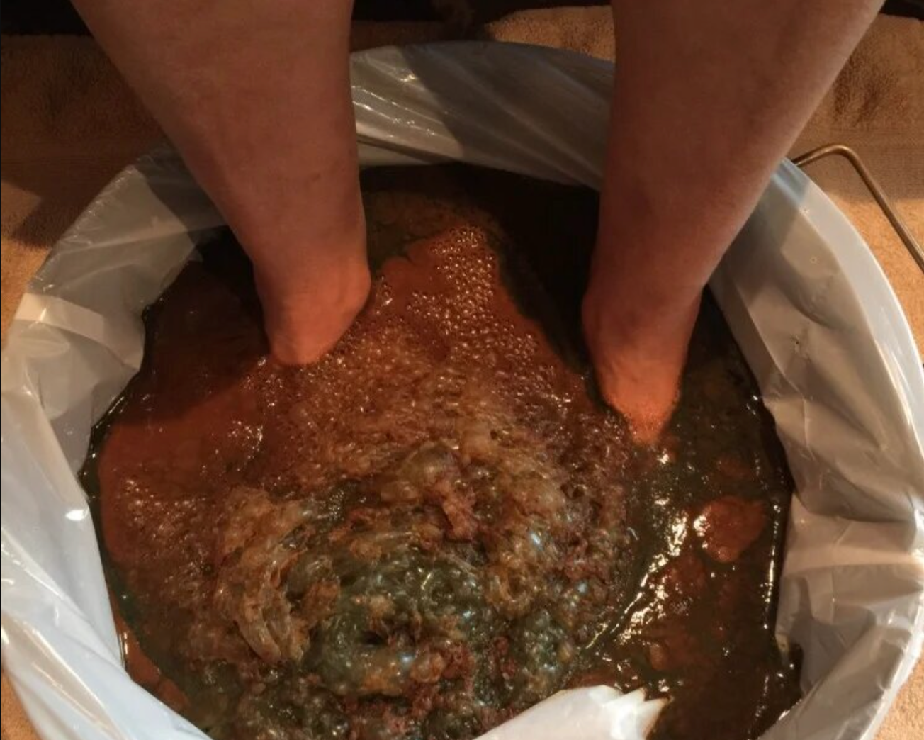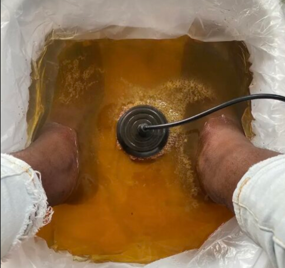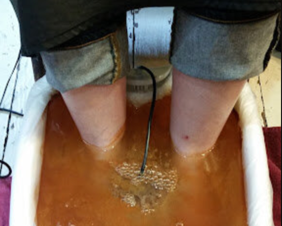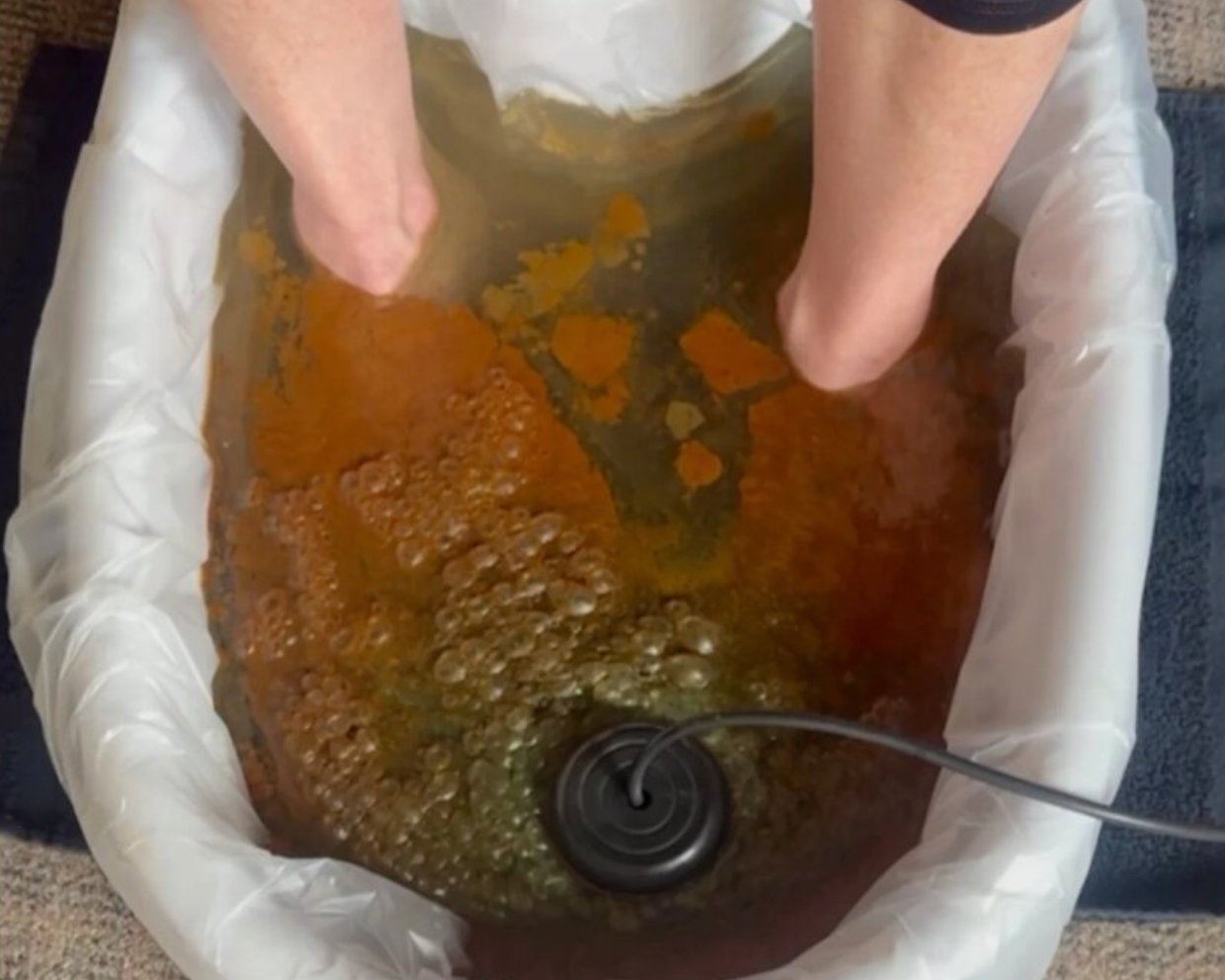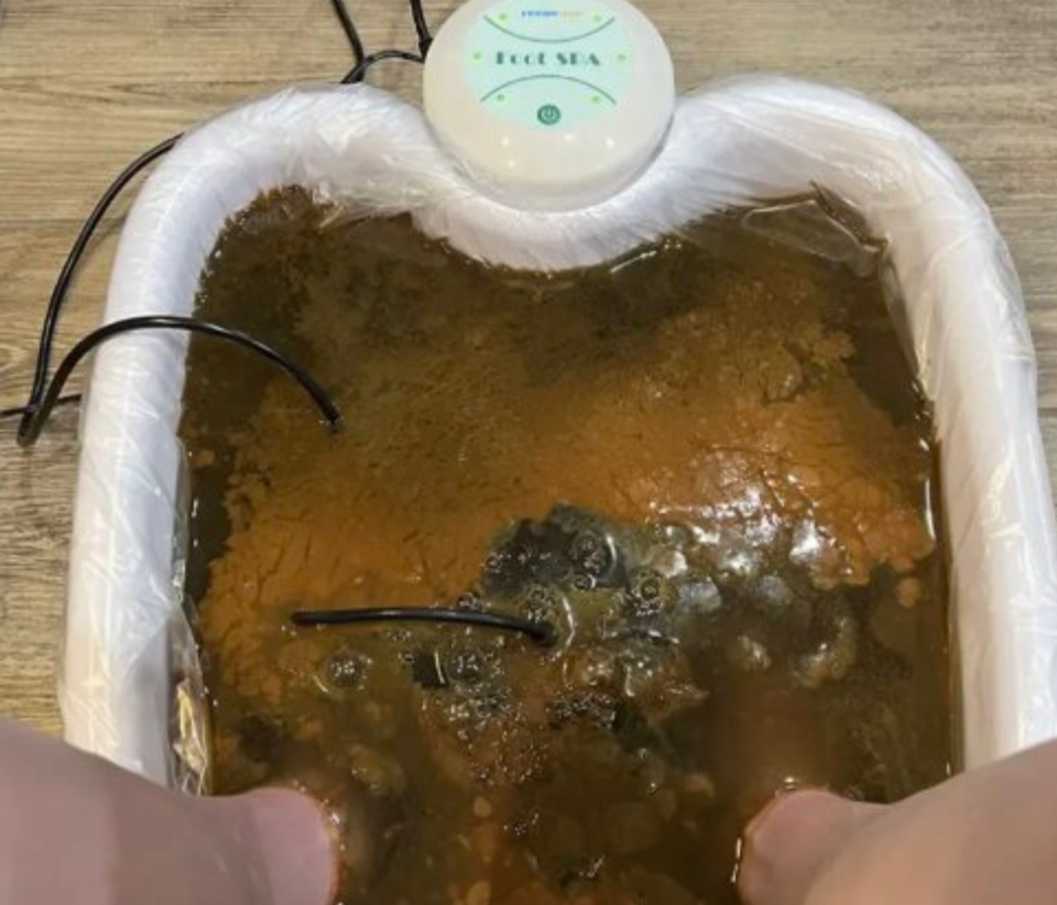 När du placerar fötterna i vattnet börjar kroppen gradvis frigöra dessa ämnen genom porerna i fötterna. Vattnet ändrar färg som ett synligt bevis på att utrensningen är igång.